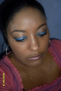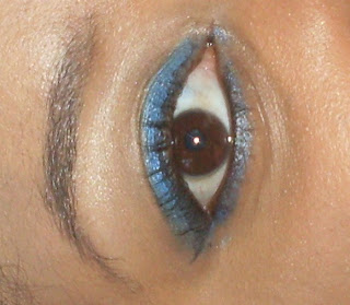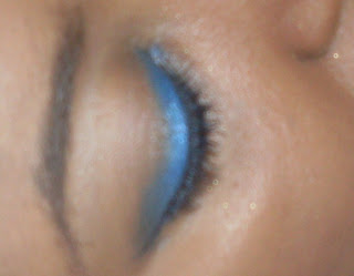 - - bright-deep blue eyeshadow on the bottom of lid. Put this on the bottom lash line.