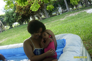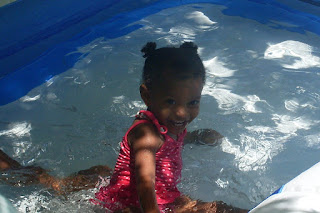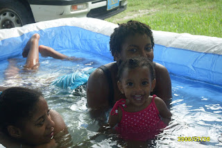 My mummy had ordered a play pool for Brooklyn, so she could have some water fun during the summer, which Brittanie brought back with her when she came down for summer break. So these are some of the pics I took while we set it up. This took 2 days to complete because the instructions told us to get a hand or foot pump, but this humongous pool needed an automatic pump. So on Saturday we get a foot pump and spent hours pumping air into the first section of this pool, and after a while we realized that it wasn't getting the job done efficiently and that we needed a higher pressure air pump, but we didn't get it until Sunday. So on Sunday we had an air tank, with which we had to make several, [5] trips