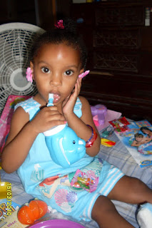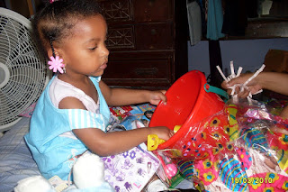 awww, ur lil sis is so beautiful and very pretty family, u & ur sis could be twins. Your lil sis couldn't wait to get in the her gift.